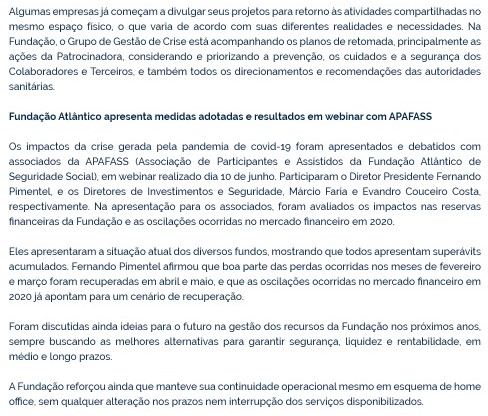 A Fundação Atlântico divulgou o texto abaixo sobre a webinar com associados da APAFASS: